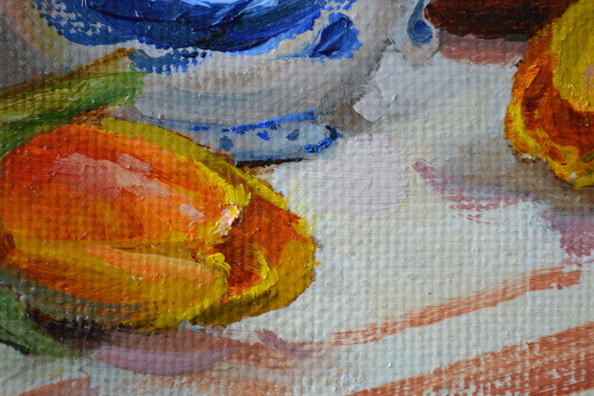 Эту картину маслом Натюрморт с грейпфрутами я написала в рамках арт-ярмарки «Арт-Екатеринбург» в апреле 2025 года. Я назвала ее «Запах грейпфрутов»